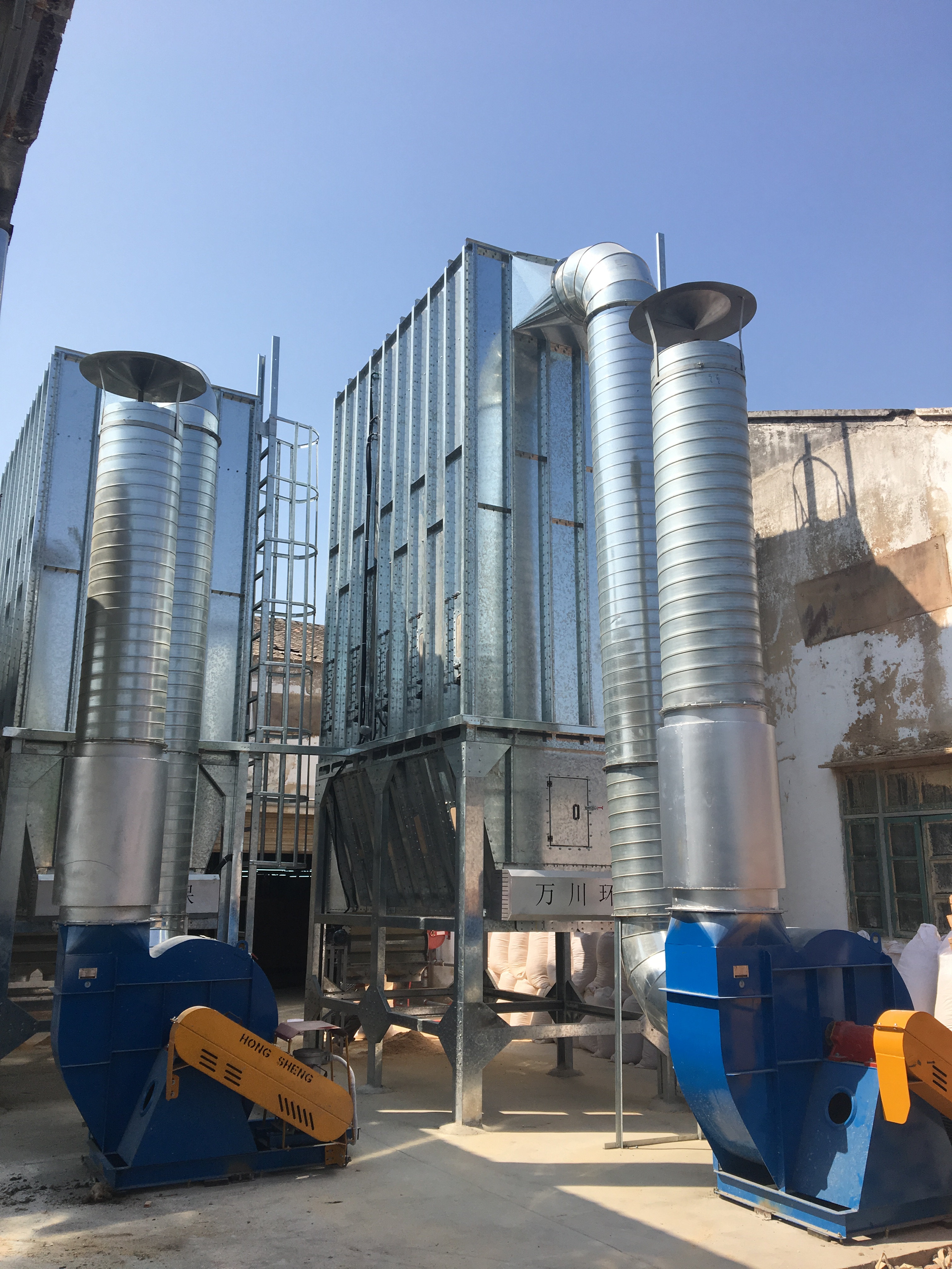 根据车间设备布置情况,由于木工机械吸尘口所需的风量及风压、风速要达到要求,并预留一些风量,因此我们采用过滤能力较强脉冲袋式除尘器,匹配相应的排尘风机,达到最佳吸尘效果。